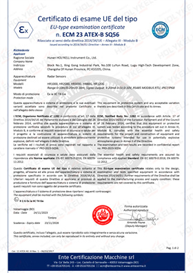 Radar ATEX Explosion Proof Certificate